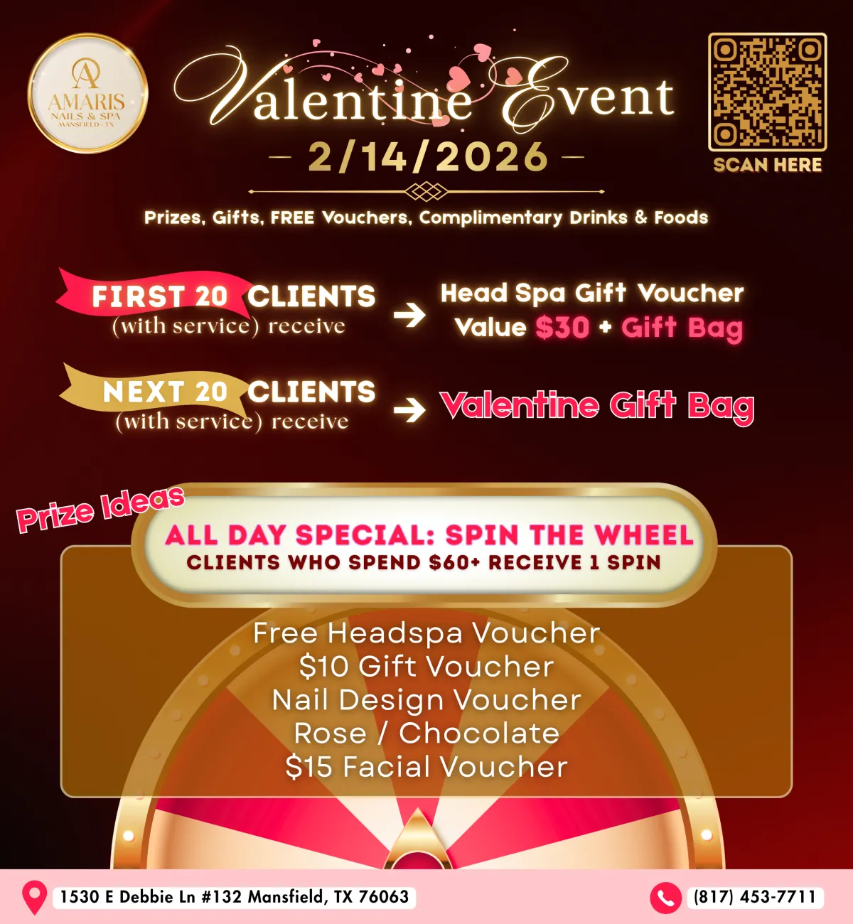 Scan the QR code for more details — we can’t wait to see you! 💗💅